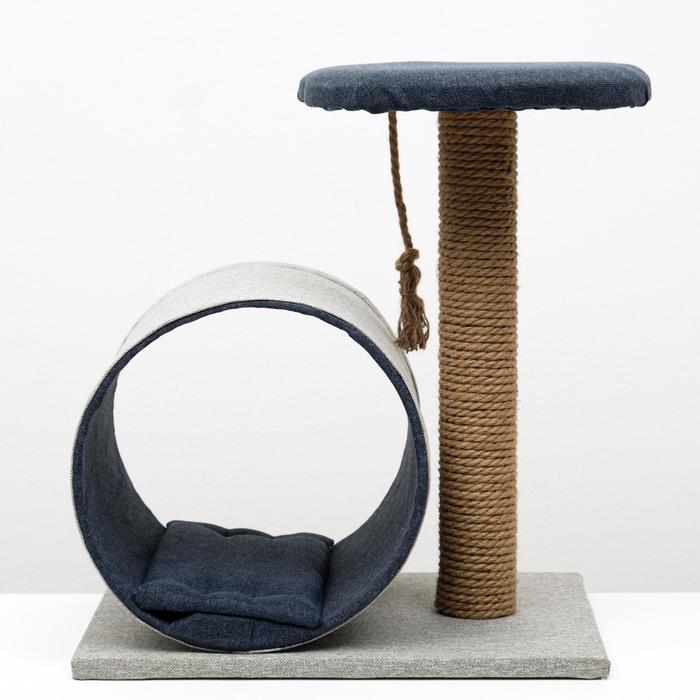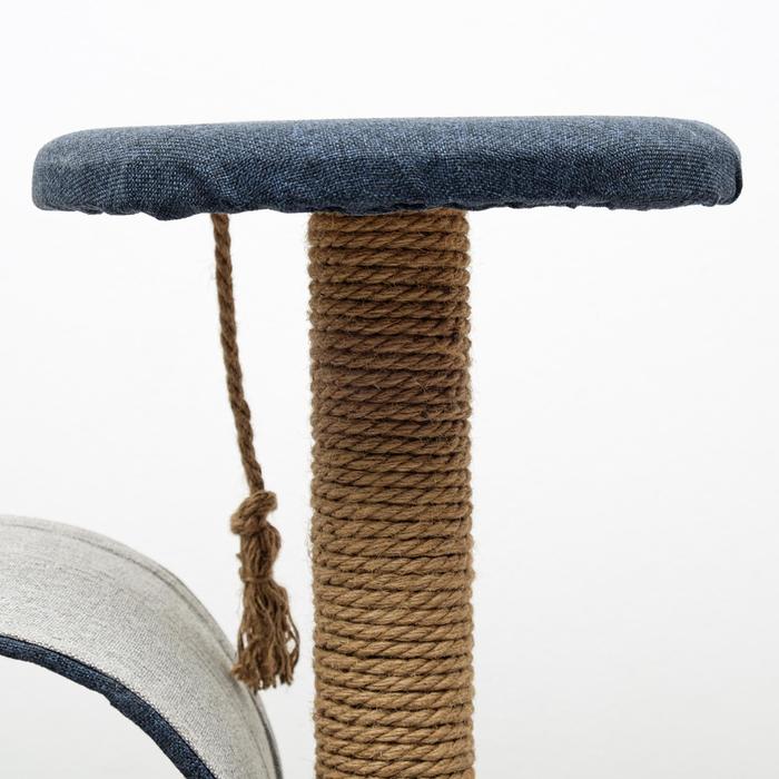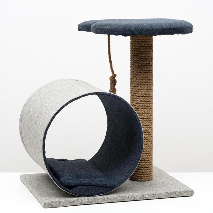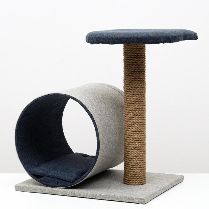 Ключевая особенность этого комплекса — сочетание когтеточки, туннеля и полочки, что делает его идеальным для активных игр и отдыха. Когтеточка, обмотанная джутом, обеспечивает естественную заточку когтей, что способствует сохранению ваших мебели и обоев в идеальном состоянии.