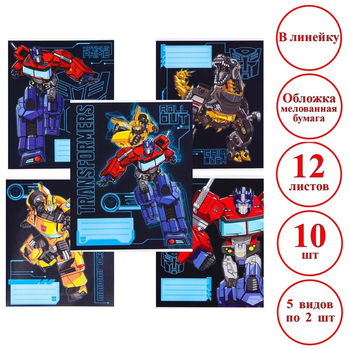 Комплект тетрадей из 10 шт "Трансформеры", 12 листов, в линейку, обложка бумага мелованная,