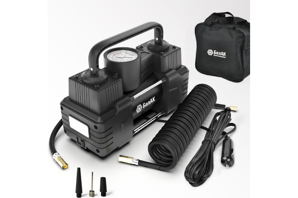 Насос автомобильный для накачки колес имеет металлический корпус. Насос электрический качает быстро как полет птицы беркут. Данная модель накачает надувной матрас и мяч. В комплект входит переходник 3 шт и прочная сумка. Компрессор БелАК имеет расширенную гарантию от производителя 12 мес