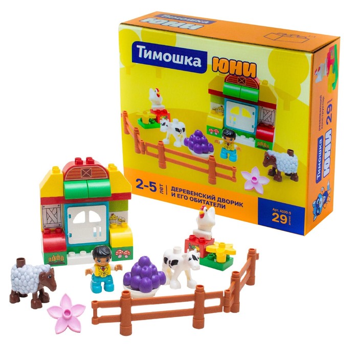 Создай уютный мир загородной жизни! Конструктор «Деревенский дворик и его обитатели» — это первый набор для знакомства с конструированием и сюжетной игрой. Яркие элементы и узнаваемые персонажи помогают малышам осваивать базовые навыки в комфортном формате.