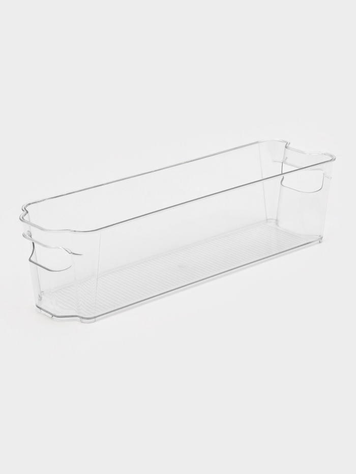 Прозрачный контейнер упорядочит пространство холодильника без лишних усилий. Узкая вытянутая форма 37,5 см в длину занимает место между бутылками и банками, где обычно теряются пакеты с зеленью или нарезкой. Видите содержимое сразу