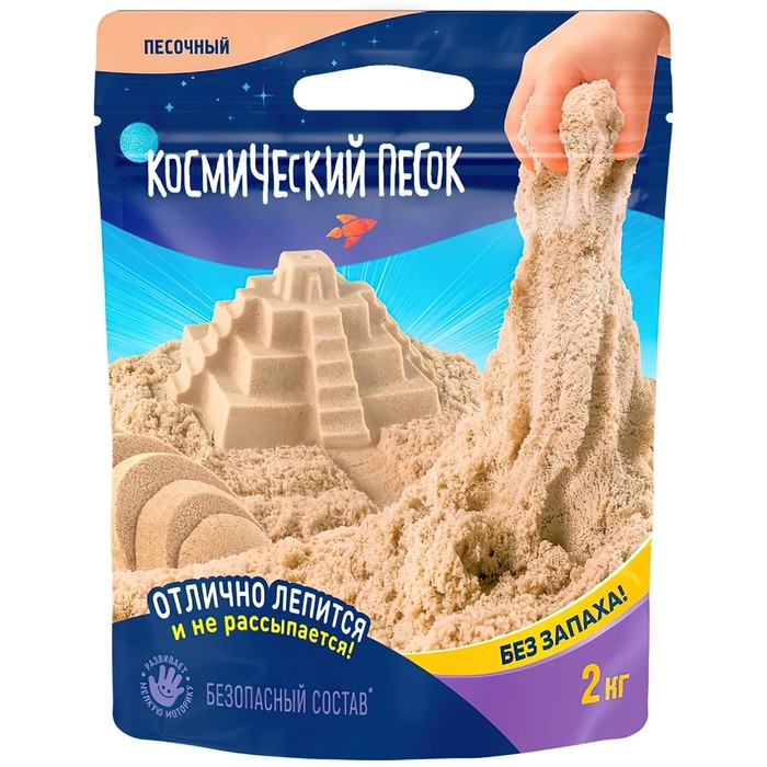 Космический песок — это инновационный материал для творчества и игр. Он похож на обычный влажный песок, но в то же время он абсолютно сухой. Песок легко рассыпается в руках, оставляя ладони сухими и чистыми. Хорошо сохраняет форму во время лепки.