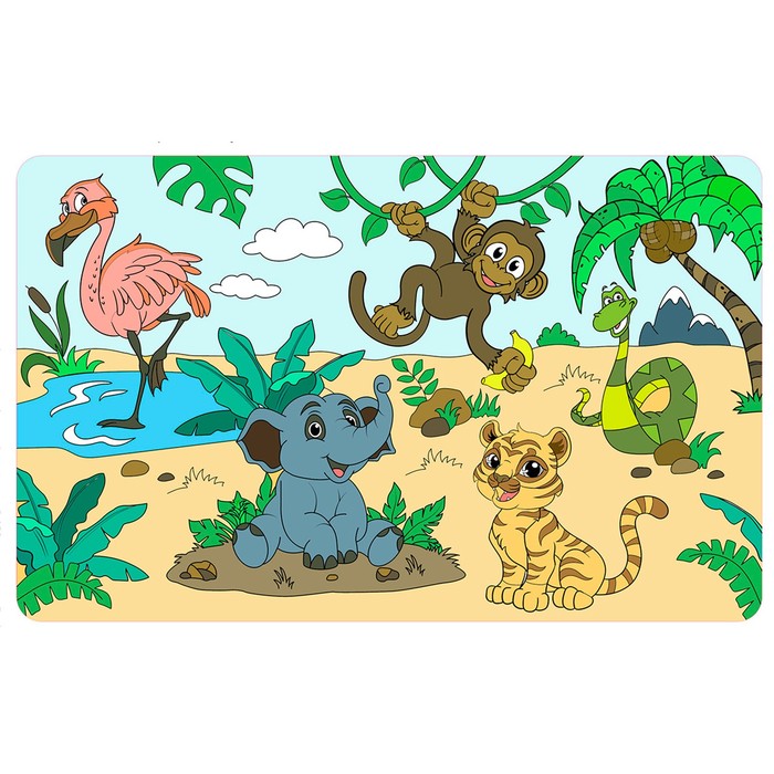 Коврик-раскраска многоразовый «Джунгли» — это увлекательная и полезная игрушка для детей. Он не только развивает мелкую моторику и координацию движений, но и позволяет ребёнку весело провести время.