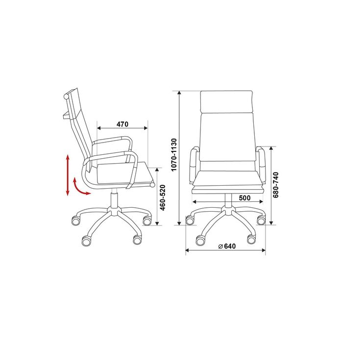• Металлические, хромированные подлокотники с накладками из искусственной кожи.