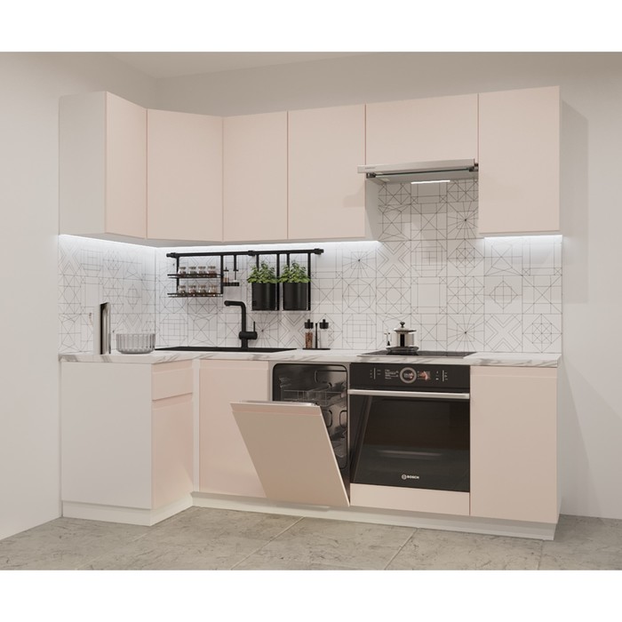 Кухонный гарнитур угловой «Лайн - 25», 1000×2450 мм, цвет белый/фарфор/мрамор белый