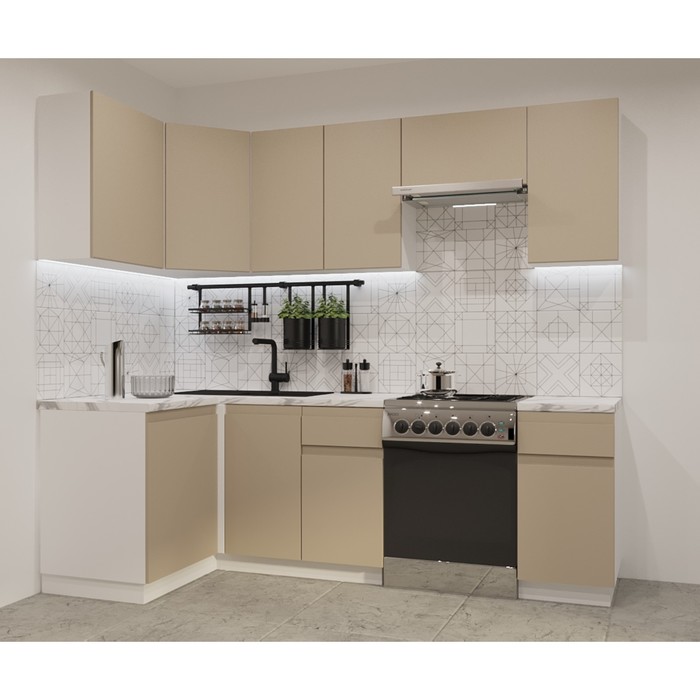 Кухонный гарнитур угловой «Лайн - 31», 1200×2400 мм, цвет белый/пикрит/мрамор белый