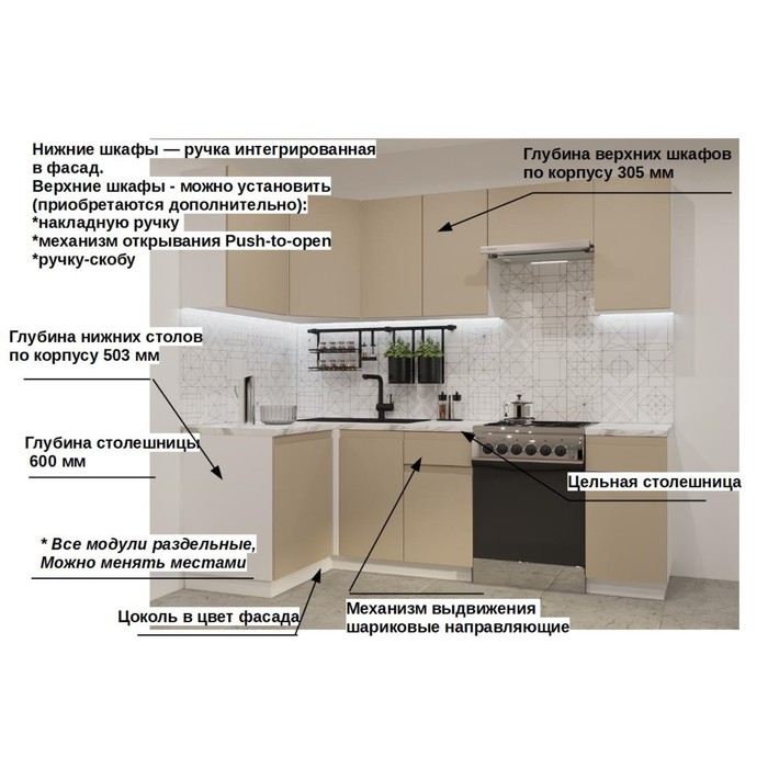 Кухонная мойка, стеновая панель, решётка посудосушителя - в комплект не входят