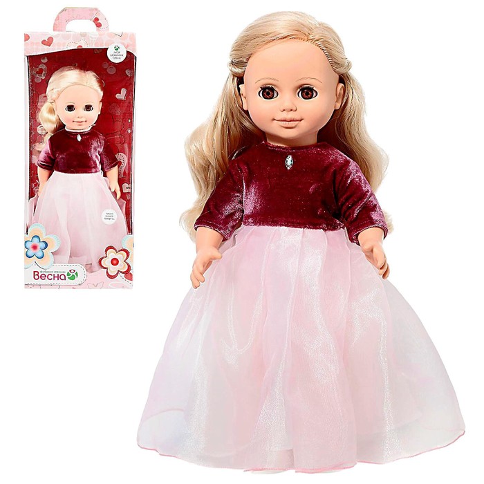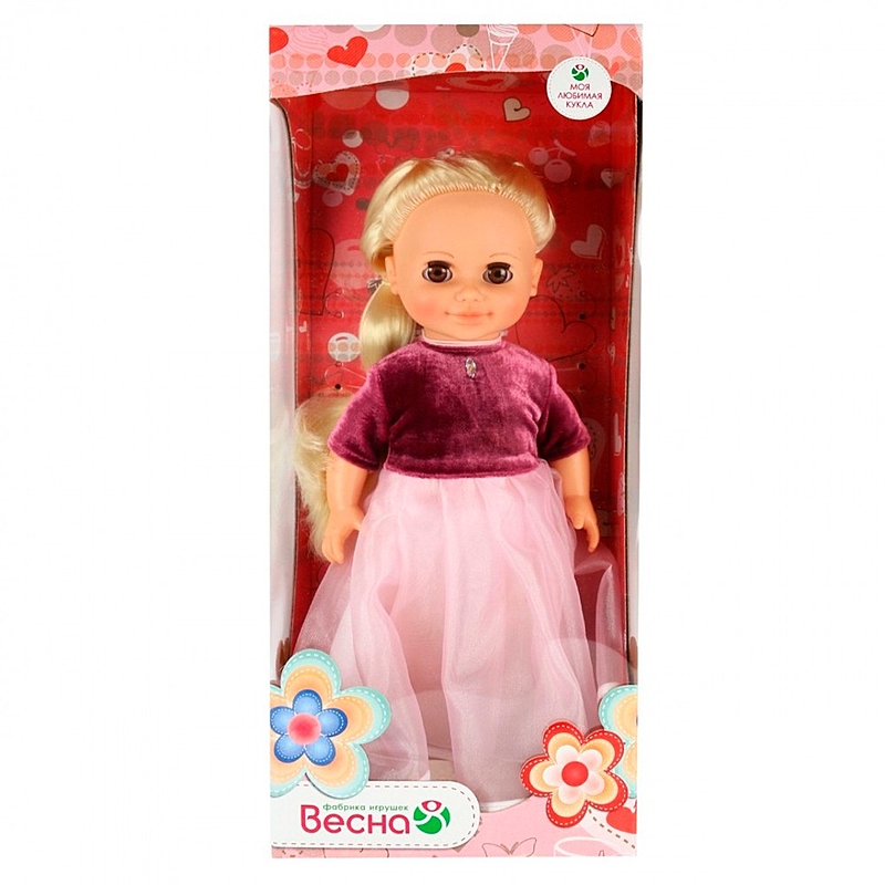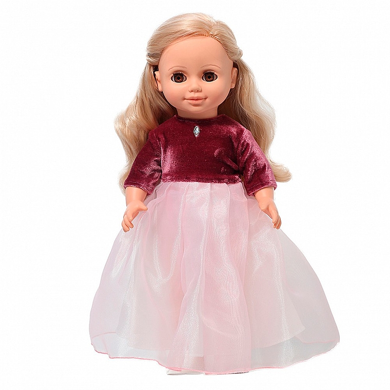 Очаровательная Анна праздничная 1 непременно придется по душе девочке и станет ей хорошей подружкой. Праздничный образ куклы создает платье из бархата и органзы с рукавом 3/4, на груди декоративное украшение, застежка сзади на велкро, на ногах – туфельки. У Анны длинные густые волосы, прошитые, из качественного нейлона, их можно завивать, расчесывать, укладывать, меняя образ красавицы. Игрушка полностью выполнена из качественного, приятного на ощупь винила, глаза - вставные закрывающиеся, ручки и ножки подвижны, благодаря чему куклу можно садить, переодевать и укладывать спать. Анна озвучена, при нажатии на звуковое устройство произносит следующие фразы: