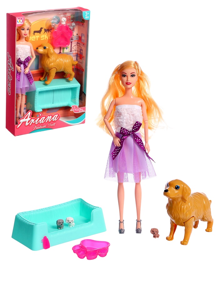 Шарнирная кукла с собачкой — это идеальный подарок для маленьких любительниц моды и животных. Кукла с длинными волосами и стильным платьем станет верной подружкой для игр, а её питомец с лежанкой, миской и щенятами добавит реализма и веселья. Нажмите на лапки собачки и появится сюрприз — милые щенята!