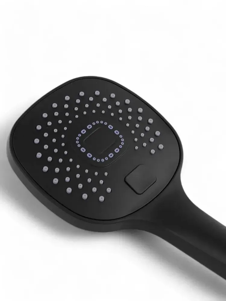 Чёрная лейка для душа имеет 2 режим струи. Матовое покрытие корпуса. Обладает особой прочностью и устойчивостью к химическим и механическим воздействиям. Cовместима со смесителями и душевыми шлангами всех импортных производителей. Душевая лейка - это важный аксессуар сантехники и неотъемлемая часть ванных комнат или душевых кабин, ведь с ее помощью можно направлять поток воды на конкретные участки тела и с комфортом принимать душ. Леечка на душ выполнена из ударопрочного ABS-пластика и покрыта качественным покрытием, защищающее поверхность лейки от царапин и сколов. Встроенная система Eco System обеспечивает минимальный расход и экономию воды. Насадка ручная душевая круглая выполнена в современном стиле и отлично дополнит интерьер любой ванной комнаты.