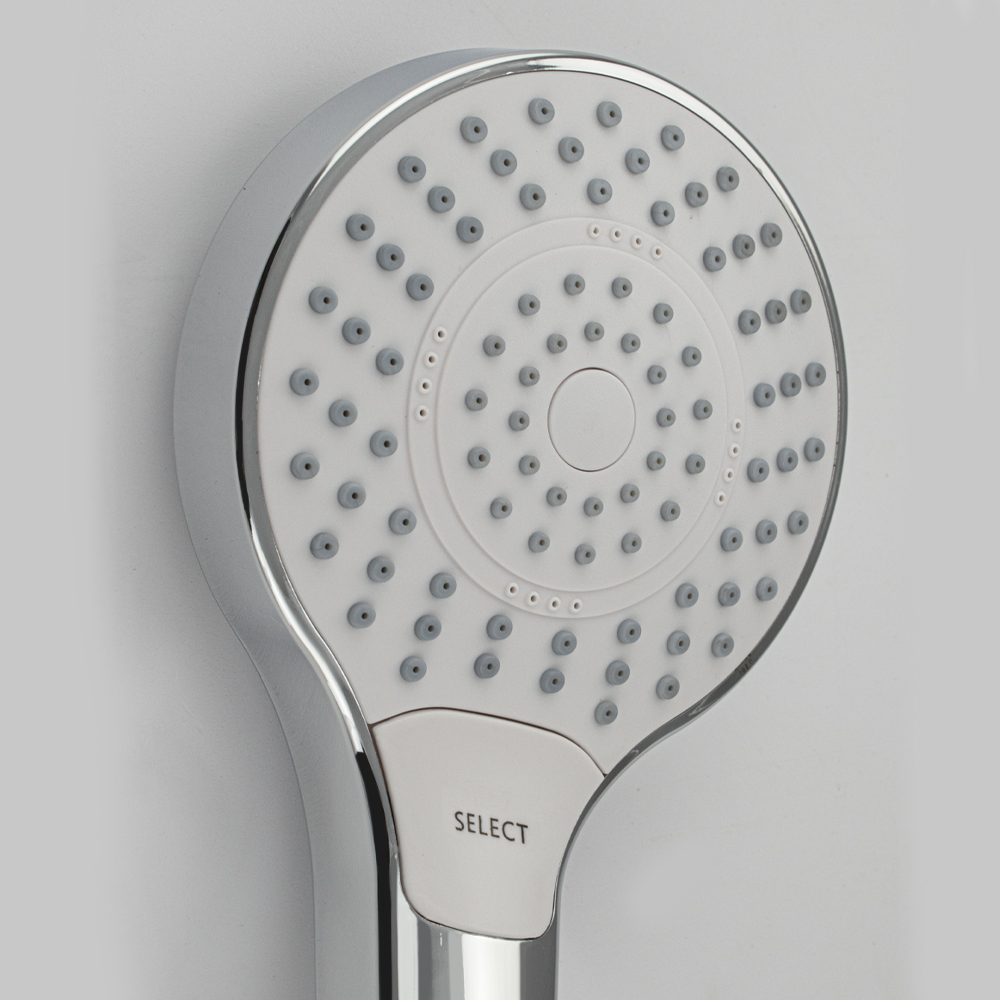 Душевая лейка отличается современным технологичным дизайном, высокой надежностью, долговечностью. Она изготовлена из влагостойкого пластика АБС и имеет декоративное покрытие цвета «хром», придающее устройству привлекательный вид и предохраняющее от агрессивного воздействия окружающей среды. Корпус отличается небольшим весом, что исключает повреждение напольной плитки или эмали ванны при случайном падении. Работает в трех режимах с регулируемой интенсивностью: дождевая, обычная, струйный массаж. Ухаживать за душевой лейкой легко. Глянцевую поверхность достаточно протереть мягкой салфеткой, она в течение долгого времени не потеряет своего блеска. Система помогает мгновенно очистить силиконовые форсунки душевой лейки от известкового налета и загрязнения.