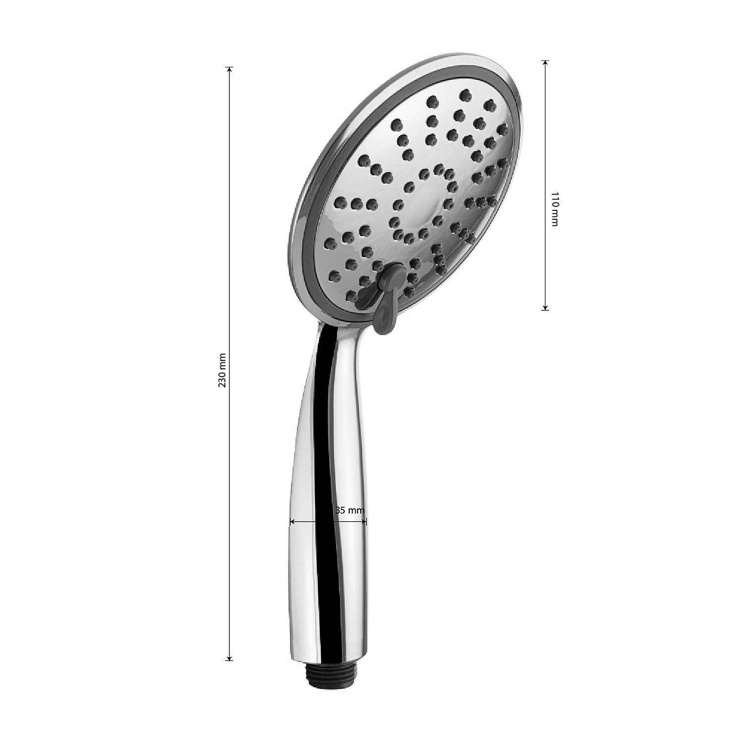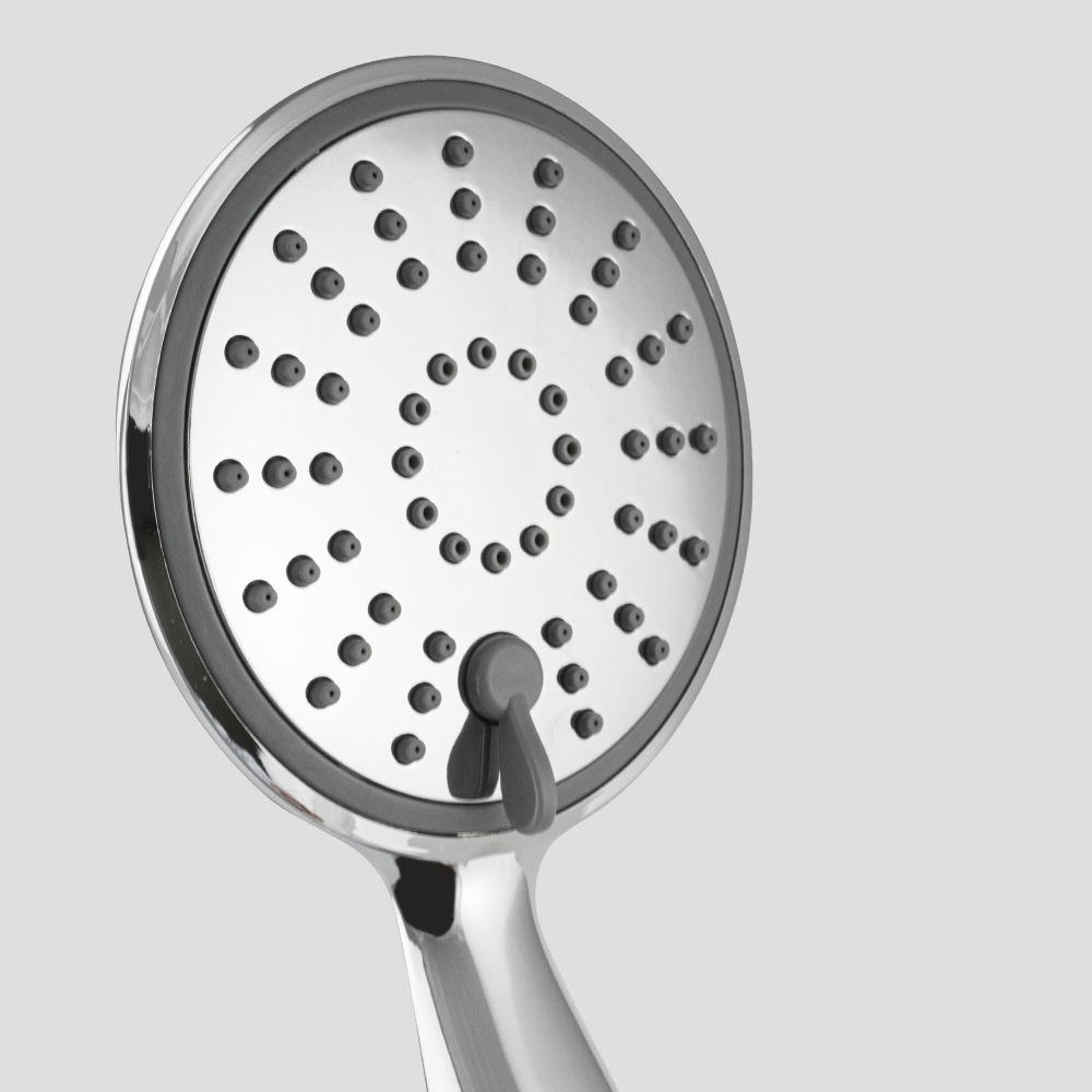Душевая лейка круглая, отличается современным технологичным дизайном, высокой надежностью, долговечностью. Она изготовлена из влагостойкого пластика АБС и имеет декоративное покрытие цвета «хром», придающее устройству привлекательный вид и предохраняющее от агрессивного воздействия окружающей среды. Корпус отличается небольшим весом, что исключает повреждение напольной плитки или эмали ванны при случайном падении. Работает в двух режимах с регулируемой интенсивностью: дождевая, обычная, струйный массаж. Ухаживать за душевой лейкой легко. Глянцевую поверхность достаточно протереть мягкой салфеткой, она в течение долгого времени не потеряет своего блеска. Система помогает мгновенно очистить силиконовые форсунки душевой лейки от известкового налета и загрязнения.
