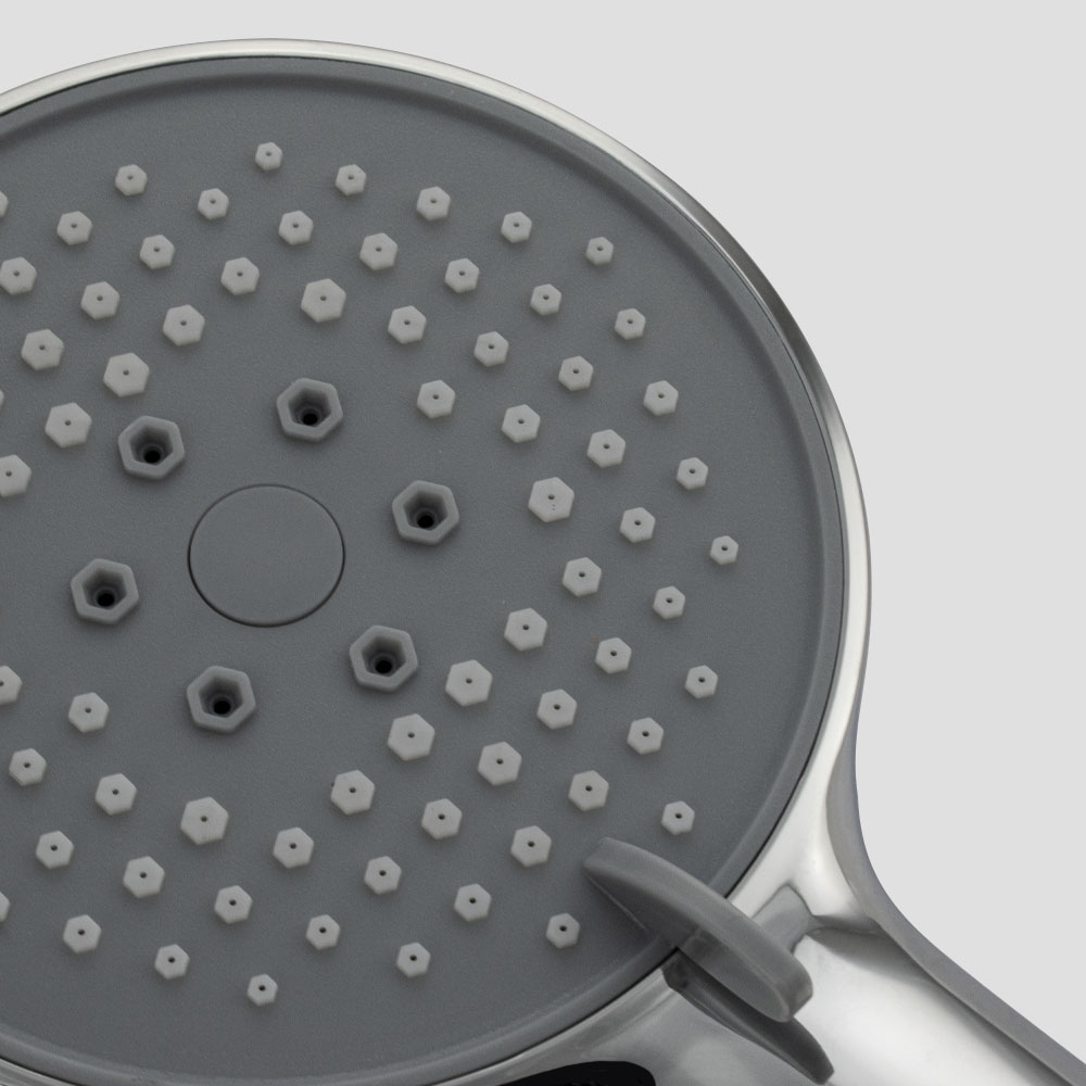 Душевая лейка массажная круглая, отличается современным технологичным дизайном, высокой надежностью, долговечностью. Она изготовлена из влагостойкого пластика АБС и имеет гальваническое покрытие хромированного цвета, придающее устройству привлекательный вид и блеск, предохраняющее от агрессивного воздействия окружающей среды. Корпус отличается небольшим весом, что исключает повреждение напольной плитки или эмали ванны при случайном падении. Работает в двух режимах с регулируемой интенсивностью: обычная, струйный массаж. Ухаживать за душевой лейкой легко. Хромированную поверхность достаточно протереть мягкой салфеткой, она в течение долгого времени не потеряет своего вида. Система помогает мгновенно очистить силиконовые форсунки душевой лейки от известкового налета и загрязнения.