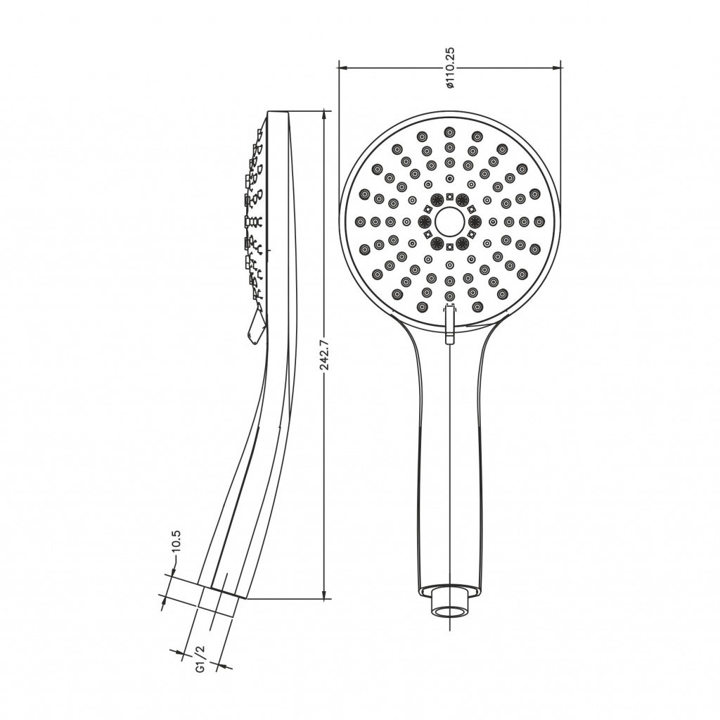 Пятирежимная душевая лейка из высокопрочного ABS-пластика с эргономичной ручкой, легкой очисткой форсунок и покрытием Chrome Plus. 5 режимов: Дождевая струя, Воздушная струя, Массажная струя, Дождевая + Воздушная струя, Дождевая + Массажная струя. Пищевой ABS-пластик придаёт лейке дополнительную прочность, а также безопасен для здоровья. Chrome Plus - ударопрочное и стойкое к царапинам покрытие. Easy Clean - легкая очистка, форсунки из мягкого силикона. Универсальное G1/2 соединение.