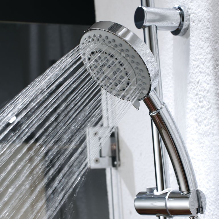 Восьмирежимная душевая лейка из высокопрочного ABS-пластика с эргономичной ручкой, легкой очисткой форсунок и покрытием Chrome Plus. 8 режимов: Дождевая струя, Воздушная струя, Массажная струя, Водяной туман, Дождевая + Воздушная струя, Дождевая + Массажная струя, Дождевая струя + Водяной туман, Воздушная + Массажная струя. Пищевой ABS-пластик придаёт лейке дополнительную прочность, а также безопасен для здоровья. Chrome Plus - ударопрочное и стойкое к царапинам покрытие. Easy Clean - легкая очистка, форсунки из мягкого силикона. Универсальное G1/2 соединение.