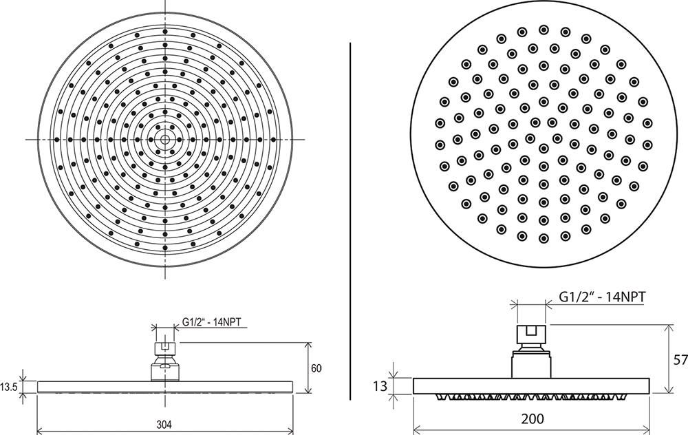 Компактные размеры при внушительном диаметре делают эту модель идеальным решением для любой ванной комнаты. Высота всего 57 миллиметров позволяет гармонично вписать душ в любой интерьер. Универсальный размер подводки 1/2 дюйма обеспечивает совместимость с большинством современных смесителей.
