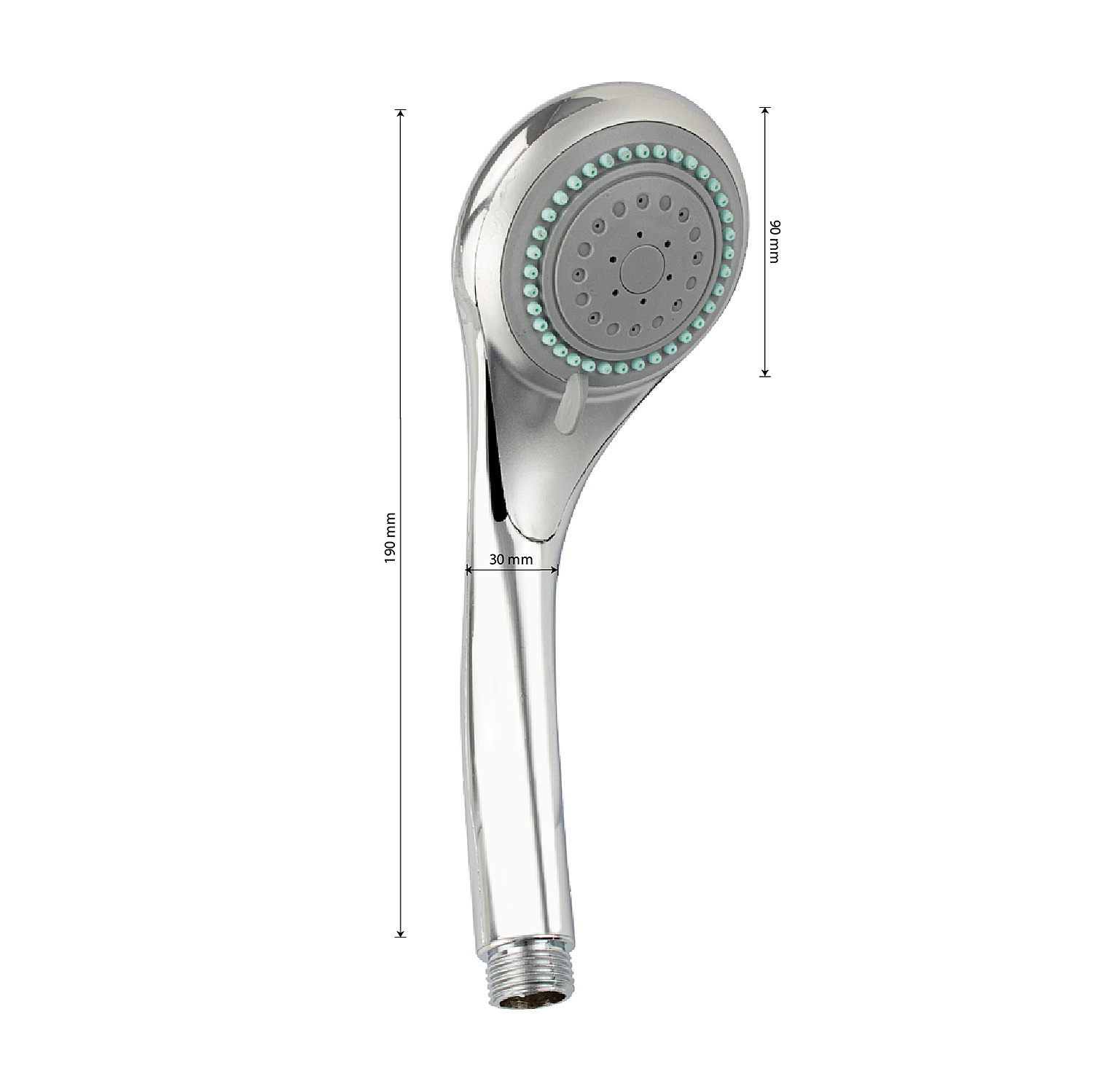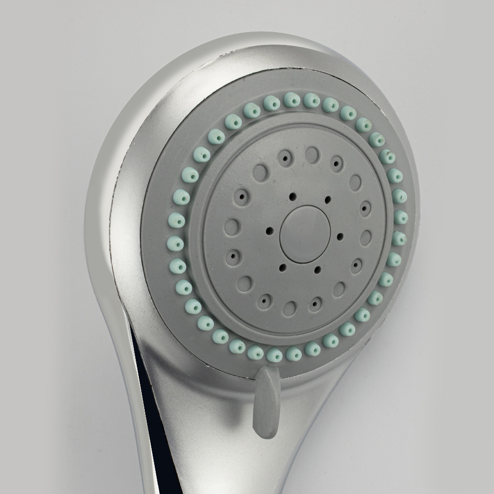 Душевая лейка отличается современным технологичным дизайном, высокой надежностью, долговечностью. Она изготовлена из влагостойкого пластика АБС и имеет декоративное покрытие цвета «хром», придающее устройству привлекательный вид и предохраняющее от агрессивного воздействия окружающей среды. Корпус отличается небольшим весом, что исключает повреждение напольной плитки или эмали ванны при случайном падении. Работает в трех режимах с регулируемой интенсивностью: дождевая, обычная, массажная струи. Ухаживать за душевой лейкой легко. Глянцевую поверхность достаточно протереть мягкой салфеткой, она в течение долгого времени не потеряет своего блеска. Система помогает мгновенно очистить силиконовые форсунки душевой лейки от известкового налета и загрязнения.