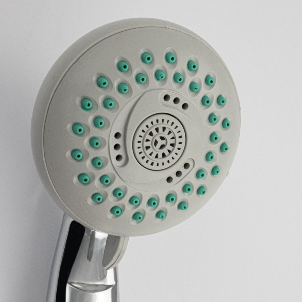 Душевая лейка отличается современным технологичным дизайном, высокой надежностью, долговечностью. Она изготовлена из влагостойкого пластика АБС и имеет декоративное покрытие цвета «хром», придающее устройству привлекательный вид и предохраняющее от агрессивного воздействия окружающей среды. Корпус отличается небольшим весом, что исключает повреждение напольной плитки или эмали ванны при случайном падении. Работает в двух режимах с регулируемой интенсивностью: обычная, струйный массаж. Ухаживать за душевой лейкой легко. Глянцевую поверхность достаточно протереть мягкой салфеткой, она в течение долгого времени не потеряет своего блеска. Система помогает мгновенно очистить силиконовые форсунки душевой лейки от известкового налета и загрязнения.