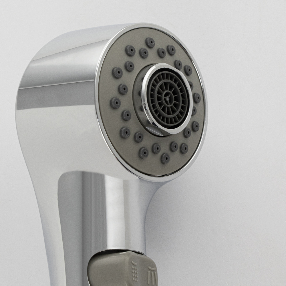 Душевая лейка отличается современным технологичным дизайном, высокой надежностью, долговечностью. Она изготовлена из влагостойкого пластика АБС и имеет декоративное покрытие цвета «хром», придающее устройству привлекательный вид и предохраняющее от агрессивного воздействия окружающей среды. Корпус отличается небольшим весом, что исключает повреждение любых покрытий при случайном падении. Работает в двух режимах с регулируемой интенсивностью: дождевая, обычная. Ухаживать за душевой лейкой легко. Глянцевую поверхность достаточно протереть мягкой салфеткой, она в течение долгого времени не потеряет своего блеска. Система помогает мгновенно очистить силиконовые форсунки душевой лейки от известкового налета и загрязнения.