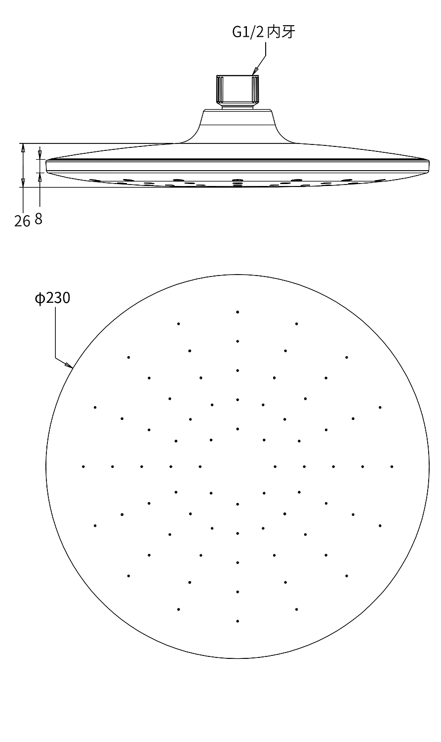 Круглая лейка диаметром 23 сантиметра создаёт широкое покрытие водой, обеспечивая комфортный тропический душ. Корпус изготовлен из качественного ABS-пластика с глянцевым хромированным покрытием, которое не только эффектно выглядит, но и устойчиво к появлению царапин и следов воды.
