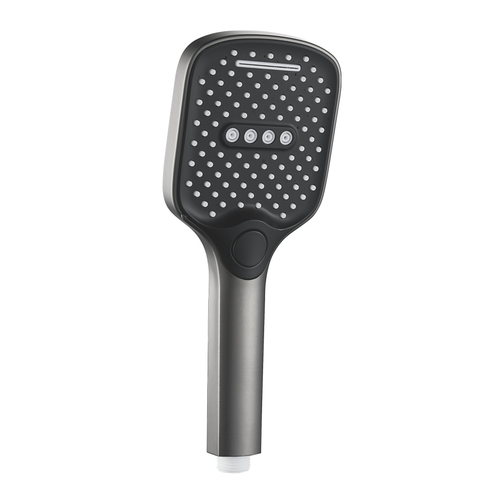 Лейка для душа Shevanik SH40T-1 идеальный выбор для вашей ванной комнаты. Цвет - оруженйая сталь. Благодаря современному дизайну, она легко впишется в любой интерьер. Изготовлена из качественного ABS пластика, лейка гарантирует прочность и долговечность использования. Эта лейка для душа оснащена 3 режимами работы: мягкое, дождевое и насыщенное массажное распыление, что позволит вам выбрать оптимальный вариант для комфортного принятия душа. Силиконовые форсунки легко очищаются от известкового налета и обеспечивают равномерное распределение воды. Подключение лейки стандартное - 1/2", что позволяет легко установить ее на ваш существующий душевой шланг или систему.
