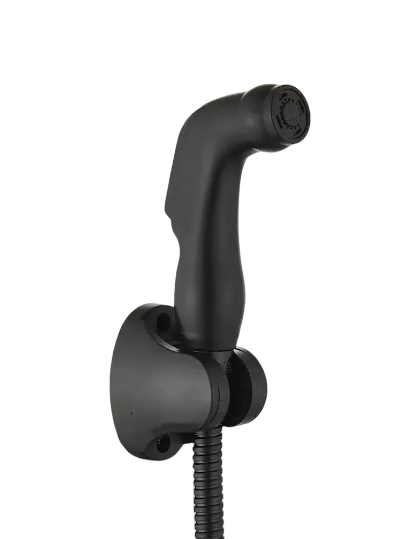 В комплект входит всё необходимое для монтажа: гибкий шланг длиной 1,5 метра, настенный держатель для лейки и крепежные элементы (саморезы и дюбели). Матовая черная поверхность придает изделию премиальный вид и делает его стильным акцентом в ванной комнате.