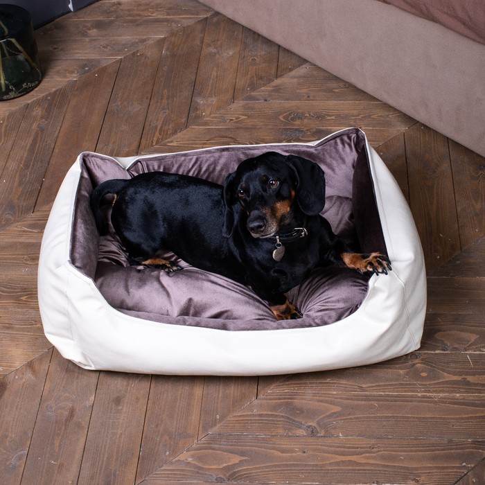Лежак доступен в трех размерах, что позволяет выбрать идеальный вариант для вашего домашнего любимца. Размер M подойдёт для птомцев среднего размера, например для таких пород собак, как мопс, такса, корги, джекрассел, бигель, французский бульдог, фокстерьер, цвергпинчер, болонка, левретка, сиба ину и многих других.