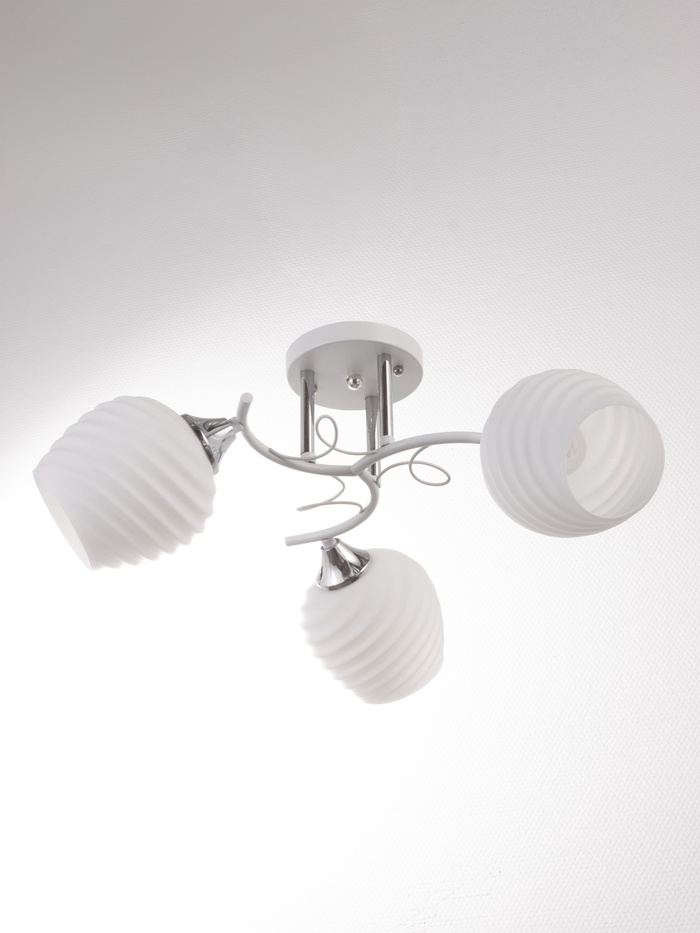 Для тех, кто ищет «люстру белую со стеклянными плафонами» или «трёхрожковую люстру в гостиную»: Эта модель — редкое сочетание классической грации и современной практичности. Стекло легко протирается и не желтеет со временем, металл сохраняет белизну и блеск хрома, а низкий профиль делает её подходящей даже для квартир с потолками ниже 2,7 м. Выберите лампы с тёплым светом — и получите освещение, которое работает незаметно, но всегда точно.