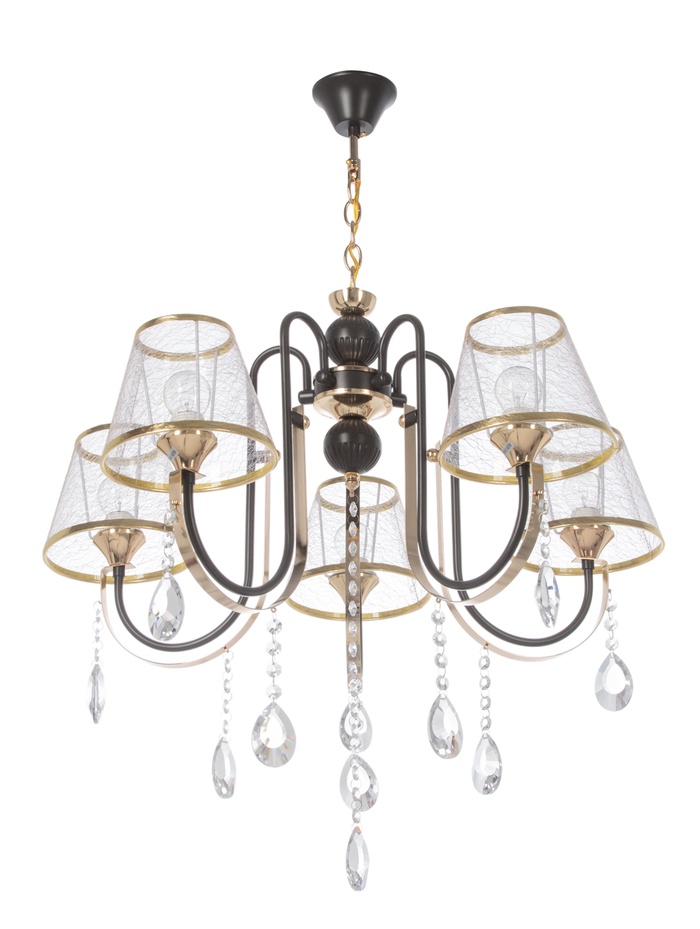 Подвесная люстра в оттенках кофе и золота создаёт выразительный световой акцент в интерьере и подчёркивает эстетику неоклассики. Металлическое основание с декоративными элементами гармонично сочетается с текстильными абажурами трапециевидной формы, которые мягко рассеивают свет и формируют комфортную атмосферу. Подвес на цепи добавляет композиции лёгкость и позволяет адаптировать высоту установки под особенности помещения.