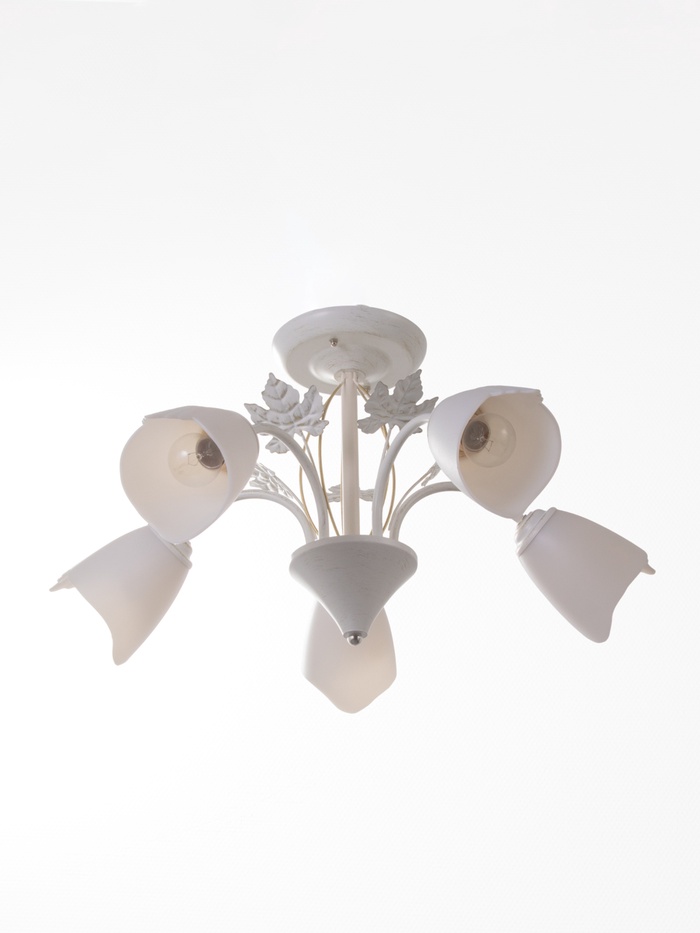 Для тех, кто ищет «люстру белую с золотом» или «цветочную люстру в спальню»: Эта модель объединяет поэтику природных форм и практичность современного дизайна. Пластиковые плафоны не выгорают, металл не теряет блеска, а компактная конструкция не «давит» на пространство. Подберите тёплые лампы — и получите уют, который включается одним щелчком выключателя.