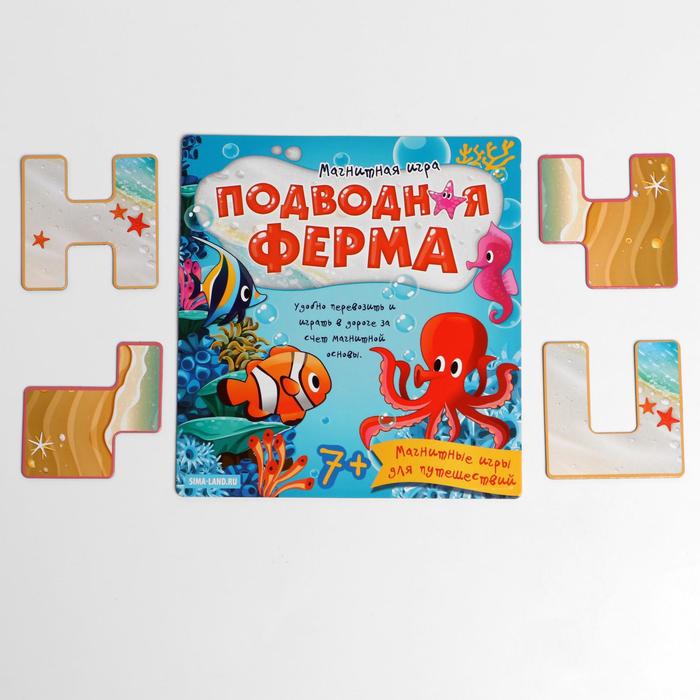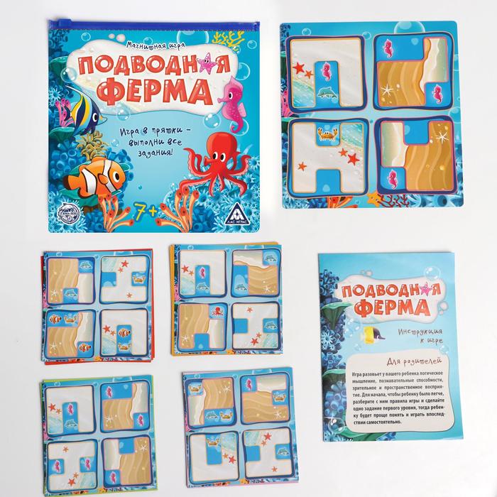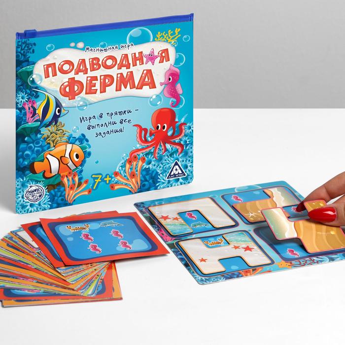 Если вы хотите интересно и с пользой провести время, то логическая магнитная игра «Подводная ферма» – то, что нужно! Окунитесь в мир морских приключений, познакомьтесь с обитателями подводного мира и выполняйте интересные задания! А удобная магнитная основа полей отлично подойдет для игры в любом месте.