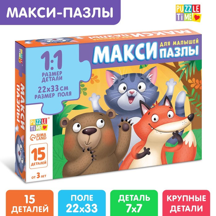 Макси-пазлы «Забавные зверята» разработаны специально для малышей. Детали большого размера удобно держать маленькими ручками.