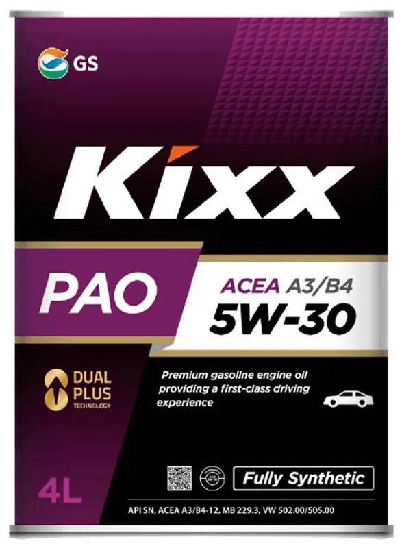 Kixx PAO A3/B4 5W-30 — синтетическое всесезонное масло премиум-класса для бензиновых двигателей, обеспечивающее первоклассное вождение. Создано с применением синтетических базовых ПАО-масел с высоким индексом вязкости и современного эффективного пакета присадок, для бензиновых и дизельных двигателей пассажирских автомобилей.