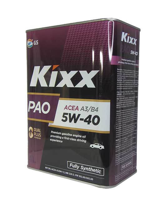 Kixx PAO A3/B4 5W-40 — синтетическое всесезонное масло премиум-класса для бензиновых двигателей, обеспечивающее первоклассное вождение. Создано с применением синтетических базовых ПАО-масел с высоким индексом вязкости и современного эффективного пакета присадок, для бензиновых и дизельных двигателей пассажирских автомобилей.