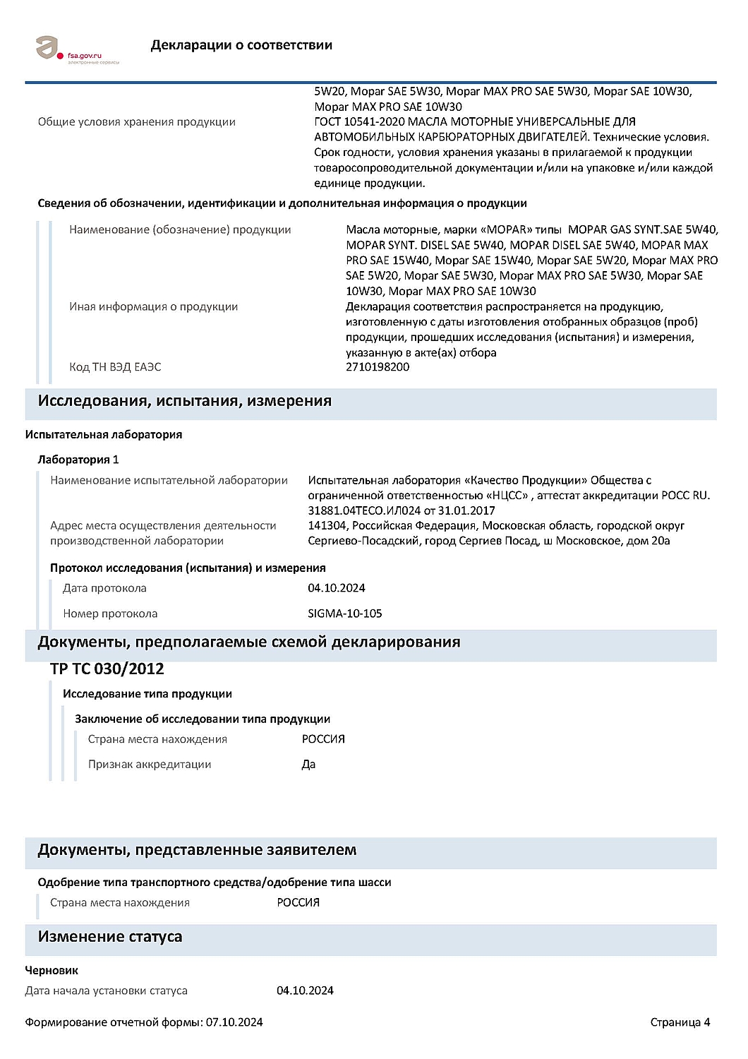 Mopar MaxPro 5W-20 является энергосберегающим низковязким маслом, разработанным на высокостабильной синтетической основе, которая обеспечивает поддержание стабильного коэффициента трения при любых стилях вождения и в любое время года, надёжно защищая подвижные узлы от износа. Продукт поддерживает великолепную текучесть в зимний период, свободно прокачивается по системе смазки и быстро достигает точек смазки, способствуя быстрому холодному старту с минимальным пусковым износом. Высокая устойчивость к окислению и старению гарантирует поддержание первоначальных свойств на очень высоком уровне на протяжении всего срока эксплуатации.