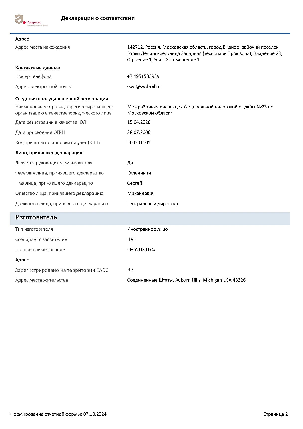 Допуски и спецификации: