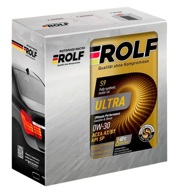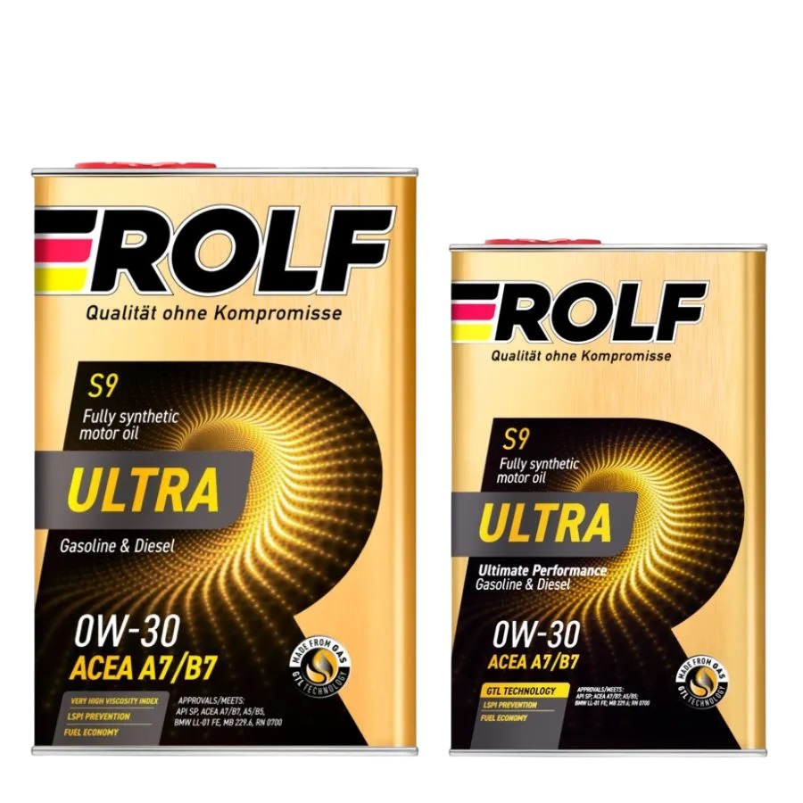Акция! 1 литр в подарок! Инновационный продукт Rolf Ultra SAE 0W-30 ACEA A7/B7 API SP - это полностью синтетическое моторное масло на основе уникальной комбинации базовых масел GTL и PAO, синтезируемых из газа, и многофункционального пакета присадок Infinium. Газ - чистейшее сырье, не содержащее "вредных" примесей, поэтому моторные масла Rolf Ultra обладают рядом преимуществ: высочайшей стабильностью к окислению, очень низким расходом на угар и исключительными низкотемпературными свойствами, в том числе температурой застывания -61 градус. Масло Rolf Ultra SAE 0W-30 ACEA A7/B7 API SP обеспечивает улучшенную защиту от преждевременного воспламенения топливной смеси в цилиндре (LSPI), отвечает повышенным требованиям к экономии топлива, защите цепи ГРМ от износа и противодействию образования отложений в турбине. Поддерживает максимальную производительность двигателя, защищая его от нагара, отложений и износа. Обладает крайне низким расходом в процессе эксплуатации. Обеспечивает легкий старт двигателя при экстремально низких температурах с первой секунды. Обладает улучшенной топливной экономичностью и ресурсосбережением. Высокий индекс вязкости обеспечивает оптимальную работу масла в разных температурных режимах. Предотвращает преждевременное воспламенение топливной смеси в цилиндре при низких скоростях (LSPI). Предназначено для применения в современных легковых автомобилях с бензиновым и дизельным двигателем, в том числе с турбонаддувом и непосредственным впрыском топлива, где производителем рекомендуется уровень свойств ACEA A7/B7 или API SP и предыдущих категорий. Использование только оригинальных пакетов присадок крупнейших мировых компаний обеспечивает полное соответствие указанным допускам автопроизводителей. Одобрения и соответствия: API SP; ACEA A7/B7, A5/B5; BMW LL-01 FE; MB 229.6; RN 0700.