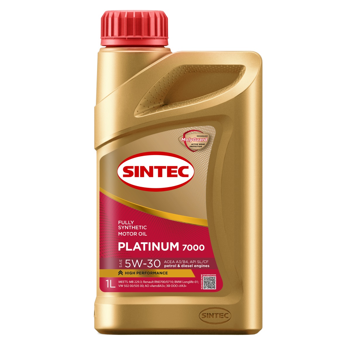 Sintec Platinum 7000 5W-30 A3/B4 производится из синтетических базовых масел и высокоэффективного многофункционального импортного пакета присадок. Синтетические базовые масла обеспечивают отличные низкотемпературные и термоокислительные свойства, что обеспечивает лёгкий пуск в самых суровых погодных условиях и увеличенный интервал замены масла, даже при высоких нагрузках на ДВС. Противоизносные и моюще-диспергирующие присадки последнего поколения гарантируют непревзойдённую защиту и чистоту двигателя на весь срок службы масла. Надежная защита двигателя от износа в жестких условиях городского цикла. Высокая термоокислительная стабильность: низкий расход на угар и защита двигателя от отложений. Легкий пуск двигателя при отрицательных температурах. Совместимо с уплотнительными материалами. Совместимо с современными системами каталитической нейтрализации отработавших газов. Применяется в турбированных и атмосферных бензиновых двигателях легковых автомобилей, а также легких коммерческих автомобилей и автобусов, где рекомендованы смазочные материалы категории ACEA A3/B4 или API SL/CF (и предыдущих категорий) класса вязкости SAE 5W-30.