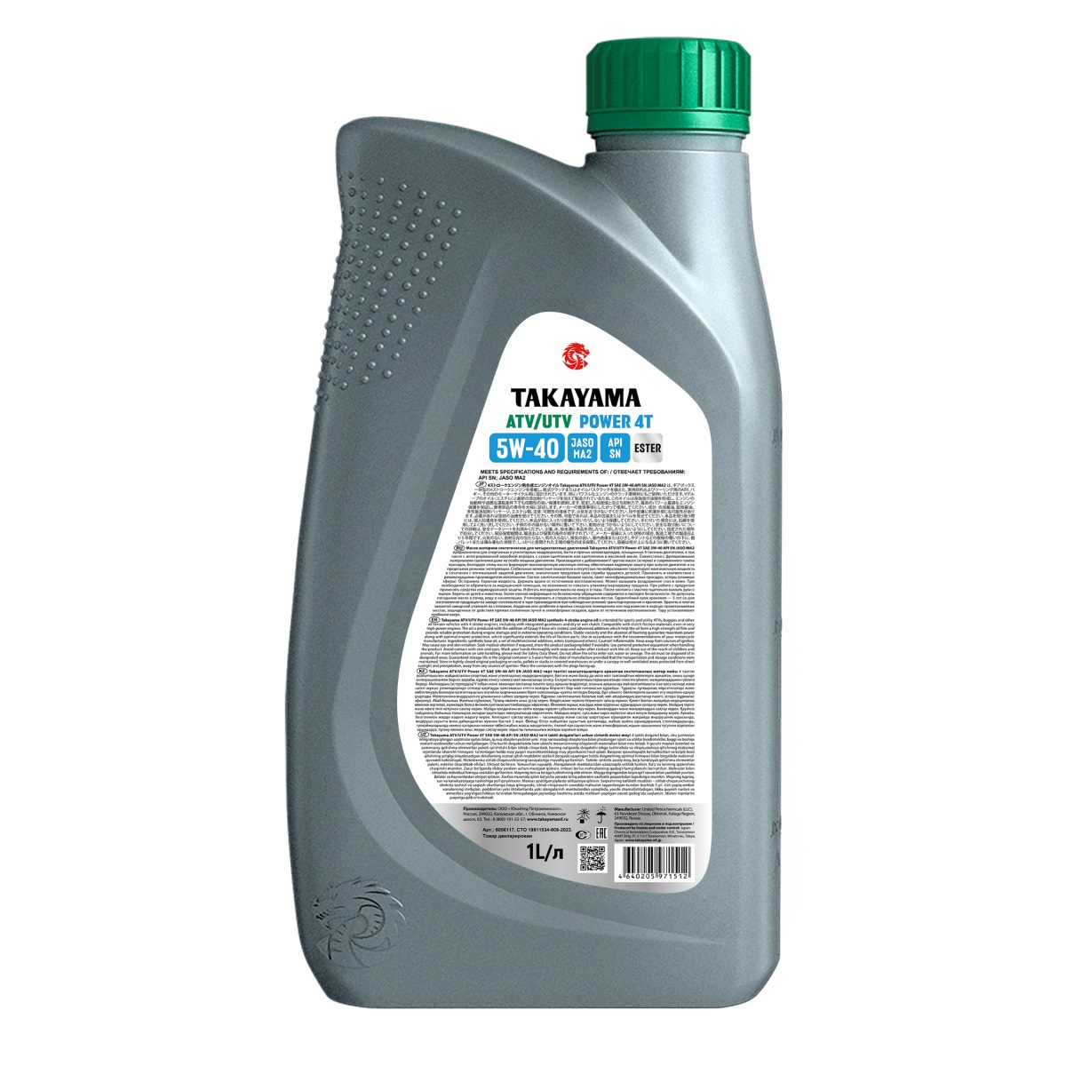 Масло моторное синтетическое для четырехтактных двигателей Takayama ATV/UTV Power 4T SAE 5W-40 API SN JASO MA2 предназначено для спортивных и утилитарных квадроциклов, багги и прочих мотовездеходов, оснащенных 4-тактным двигателем, в том числе с интегрированной коробкой передач, с сухим сцеплением или сцеплением в масляной ванне. Совместимо с фрикционными материалами сцепления даже на особо мощных двигателях. Производится с добавлением V группы масел (эстеров) и современного пакета присадок, благодаря этому масло формирует высокопрочную масляную пленку, обеспечивая надежную защиту при запуске двигателя и на предельных режимах эксплуатации. Стабильные вязкостные показатели и отсутствие пенообразования гарантирует максимальную мощность в сочетании с оптимальной защитой двигателя, значительно продлевая срок службы трущихся деталей. Спецификация: API SN, JASO MA-2.