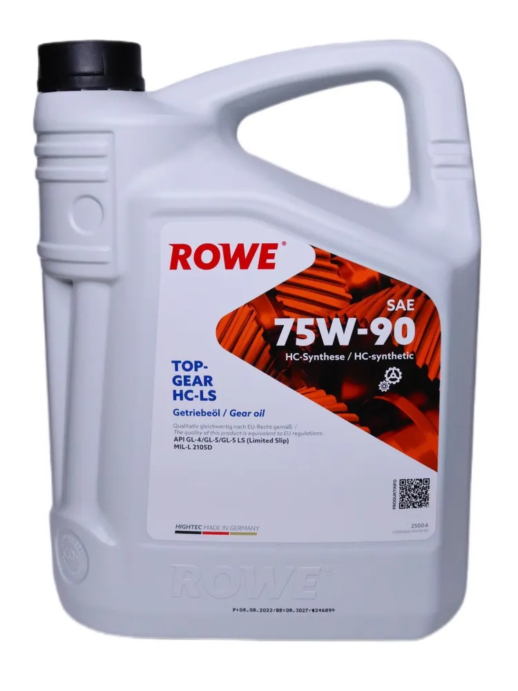 ROWE HIGHTEC TOPGEAR SAE 75W-90 HC-LS представляет собой высокопроизводительное трансмиссионное масло на основе HC-Synthese масел для механических коробок передач и главной передачи, оснащенных механизмом ограниченного скольжения LS (Limited Slip). Используется в качестве многофункционального трансмиссионного масла в традиционных главных передачах и механических коробках передач легковых и грузовых автомобилей, сельскохозяйственных, строительных и рабочих машин. Благодаря специальной композиции присадок оно может дополнительно использоваться в главных передачах, оснащенных самоблокирующимся дифференциалом с многодисковыми муфтами. Имеет равноценное качество в соответствии с законодательством ЕС согласно API GL-4/GL-5/GL-5 LS (Limited Slip), MIL-L 2105D. Первоклассный универсальный сорт масла для многофункционального использования в главных передачах легковых и грузовых автомобилей, сельскохозяйственных, строительных и рабочих машин с блокирующимися дифференциалами или без. Отличная защита от износа и коррозии. Отличная сочетаемость с синхронизатором коробки передач. Отличная термостойкость и высокоэффективная защита от окисления за счет HC-Synthese масел и специальных присадок. Высокая устойчивость к сдвигу - Stay-in-Grade. Стабильная смазочная пленка даже при очень горячем масле и очень высоких нагрузках, а также снижение износа и сокращение шумов передаточного механизма. Оптимальная низкотемпературная вязкость обеспечивает улучшение переключаемости, быстрое промасливание и низкий «холодный износ». Возможность смешивания и отличная совместимость с традиционными, а также синтетическими трансмиссионными маслами. Однако для того чтобы воспользоваться всеми преимуществами HIGHTEC TOPGEAR SAE 75W-90 HC-LS, рекомендуется провести полную замену трансмиссионного масла. Не подходит для использования в автоматических передачах, двойных сцеплениях DCT/DSG или бесступенчатых коробках передач.