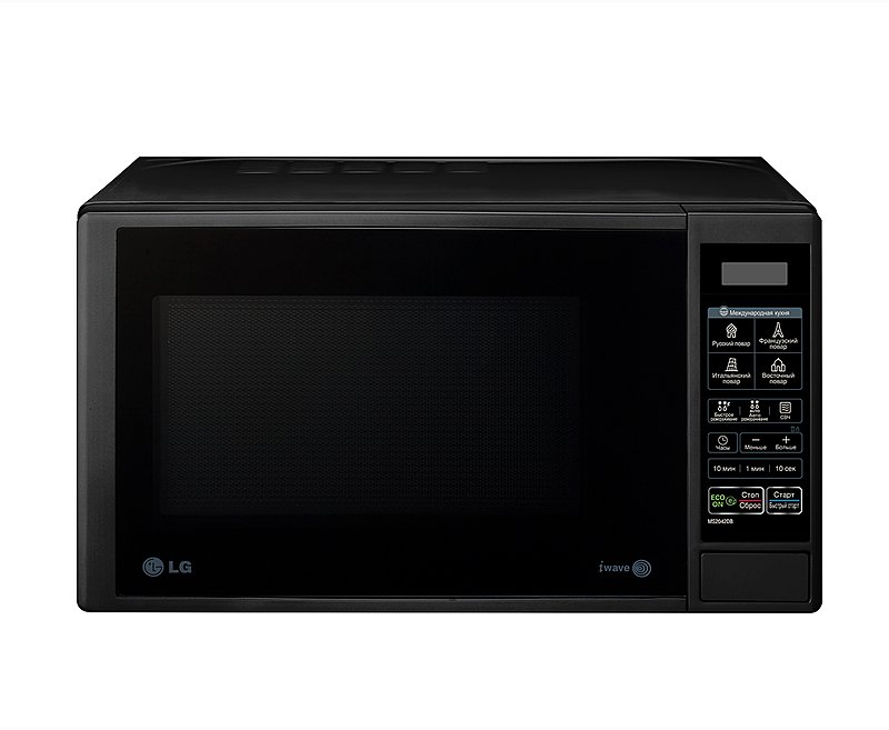 Конструкция микроволновой печи LG MS-2042DB отвечает всем актуальным техническим стандартам. Аппарат оборудован большой кнопкой, с помощью которой осуществляется открывание навесной дверцы. Сенсорная панель управления базируется с правой стороны. Более того, модель оборудована информационным дисплеем, чтобы вы всегда были в курсе того, сколько времени осталось до завершения выполнения программы. Кстати, вы никогда не пропустите этот момент, т. к. о нем оповестит характерный звуковой сигнал. Экономьте ваше время – не тратьте его на нудное и трудоемкое мытье внутренних и внешних поверхностей. Уникальное легкоочищаемое покрытие LG Easy Clean разработано специально для того, чтобы упростить процесс удаления загрязнений.