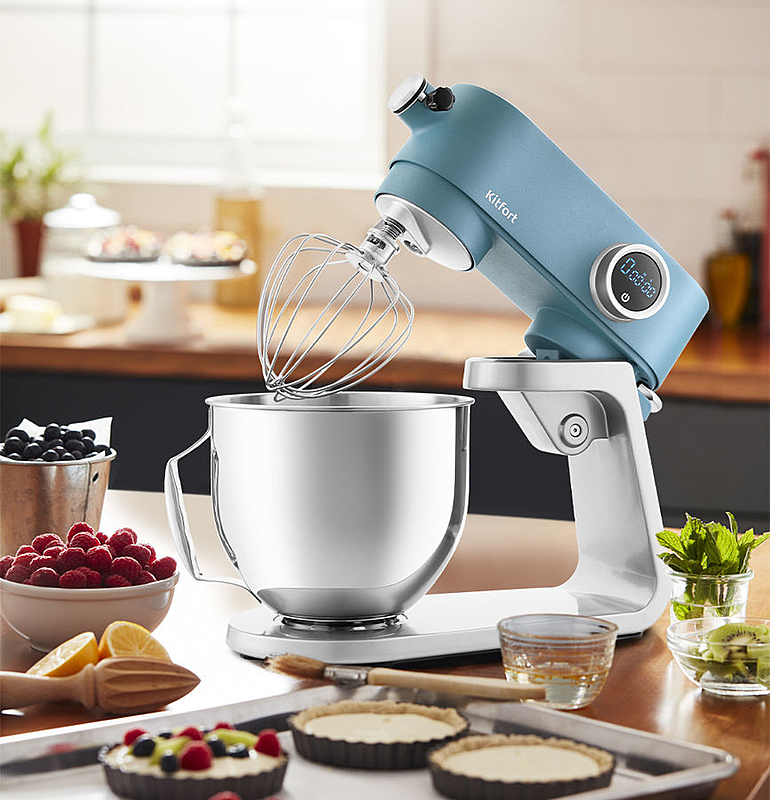 Чтобы замесить крутое тесто для пирожков или сделать картофельное пюре, не обязательно стоять часами у плиты. Используйте миксер планетарный KITFORTKT-1391-2, он сделает все сам, от вас только требуется сложить все необходимые ингредиенты, выбрать нужный режим и нажать кнопку старт. Для более комфортного использования предусмотрен дисплей, на котором отображаются все выбранные вами параметры, а прорезиненные ножки обеспечивают дополнительную безопасность и устойчивость на любой поверхности.
