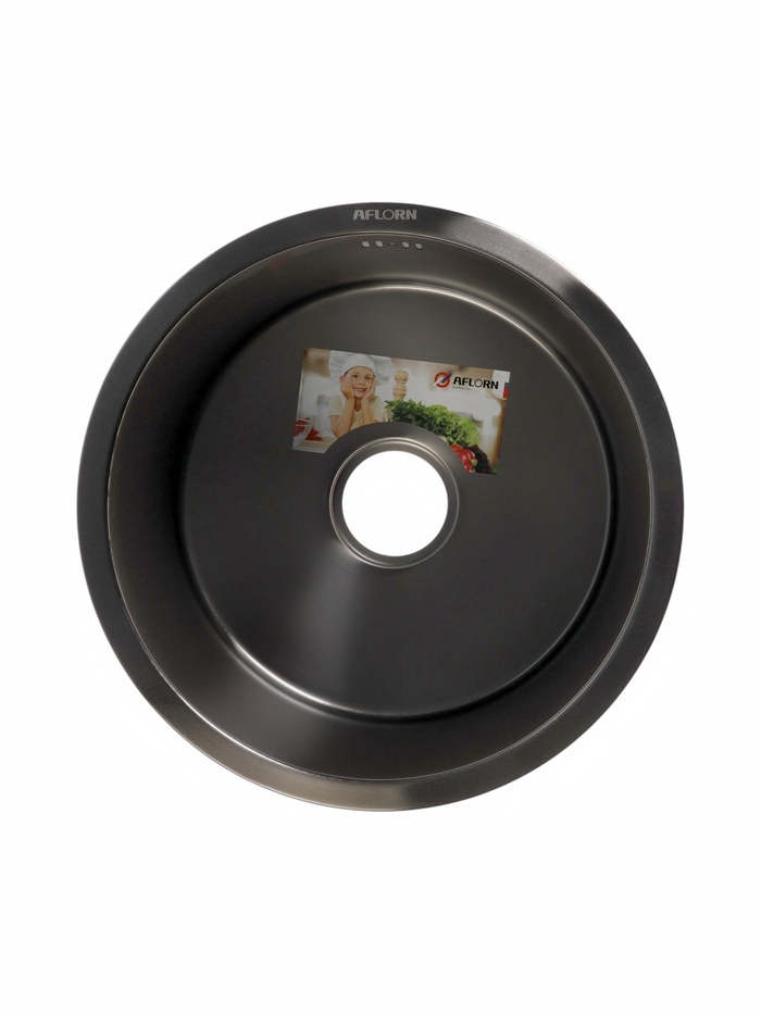 Мойка кухонная AFLORN AF94545, нержавеющая сталь, круглая, 45 см, черная