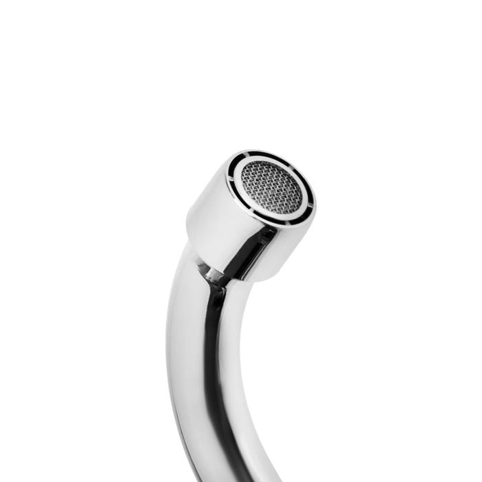 Тип излива смесителя - поворотный, что позволяет удобно направлять струю воды. Аэратор смесителя имеет антиизвестковое покрытие, что помогает предотвратить образование накипи и обеспечивает плавный и равномерный поток воды.