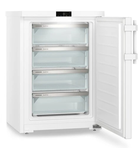 Оборудование Liebherr FDI 1624 оснащено небольшим дисплеем и четырьмя выдвижными ящиками. Корпус дополнен простым в уходе эмалированным покрытием, а также перевешиваемой конструкцией дверей.