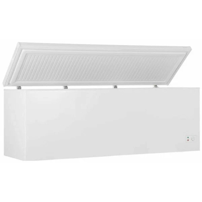 Морозильный ларь Бирюса 680KXQ выполнен в горизонтальном белом корпусе размерами 203.5x81.5x68 см. Он содержит одну камеру объемом 600 л, что делает его удобным хранилищем как для дома, так и для торговли. Внутри можно установить две подвесные корзины для хранения небольших продуктов, что облегчит их поиск. Бирюса 680KXQ замораживает до 28 кг в сутки. Благодаря режиму суперзаморозки продукты замораживаются быстрее, поэтому вы можете помещать внутрь камеры большое их количество. Следует заранее активировать этот режим, чтобы подготовить ларь к работе при более высокой мощности. На фронтальной панели внизу находятся индикаторы повышения температуры и работы. Поворотная ручка позволяет управлять температурным режимом камеры. Аппарат устанавливается на колесики, что облегчает его транспортировку.