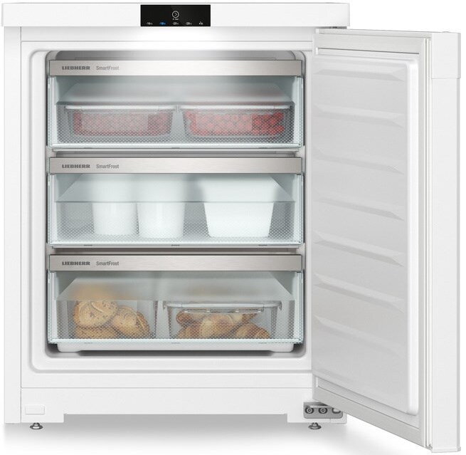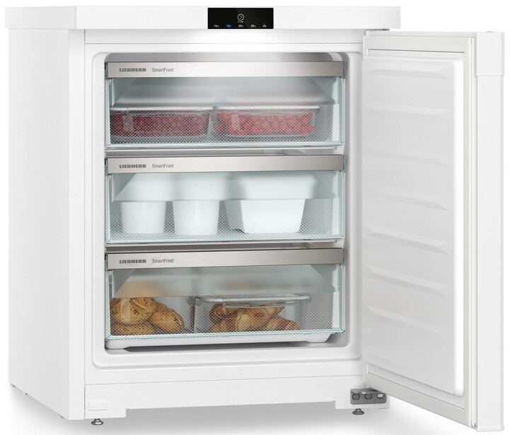 В устройстве предусмотрен режим SuperFrost с автоматическим отключением через 65 часов. Внутри морозильной камеры имеется три ящика, один из которых на выкатных роликах. Материал ящиков - стекло. Устройство оборудовано системами FrostSafe и VarioSpace. Угол открывания двери составляет 211 градусов. В устройстве одна дверь, одна камера, одна температурная зона и один компрессор. Устройство обладает защитой от детей и блокировкой экрана. В случае повышения температуры или неисправности, устройство сигнализирует световыми и звуковыми сигналами. Технология FrostProtect обеспечивает работу устройства при минимальной наружной температуре до -15°C. Устройство оснащено регулируемыми ножками и сменным уплотнителем двери.