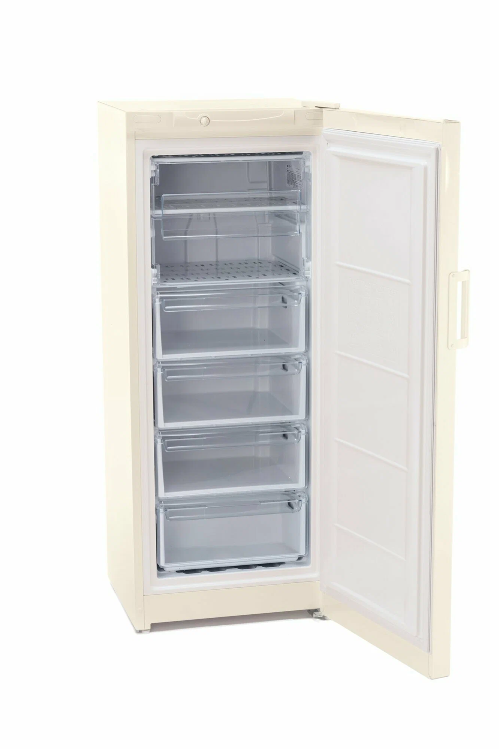 Морозильный шкаф STINOL STZ 150 E выполнен в корпусе бежевого цвета. Он имеет полезный объем 214 л. Внутреннее пространство представлено 4 выдвижными ящиками и 2 открытыми полками для распределения продуктов.