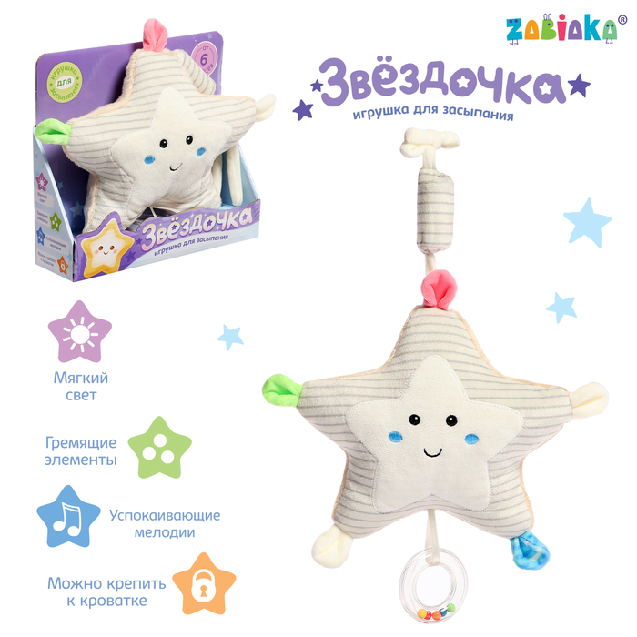 Музыкальная игрушка «Звёздочка» привлечёт внимание трогательным дизайном и создаст идеальную атмосферу для отдыха вашего малыша. Игрушка сочетает в себе функции ночника и успокаивающего музыкального сопровождения.