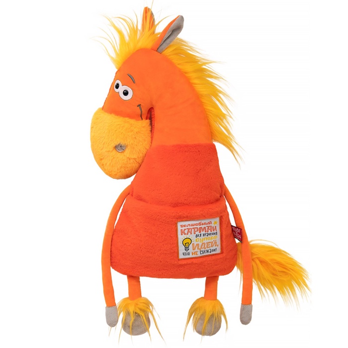 Идейный конь-подушка — это очаровательный персонаж, который станет любимым другом для вашего ребёнка или стильным аксессуаром в интерьере. Его яркий оранжевый мех и необычный дизайн создают атмосферу тепла и уюта, а удобная форма делает его идеальным спутником для игр или отдыха.